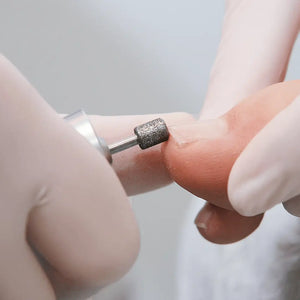 La fresa de diamante con una ventaja protectora especial: un bisel liso discurre entre los diamantes superiores y laterales, lo que evita el efecto de fresado en la cutícula durante el fresado plano de la placa de la uña y en la punta de la uña en el borde de la uña. Ideal para trabajar con pacientes sensibles o de alto riesgo.