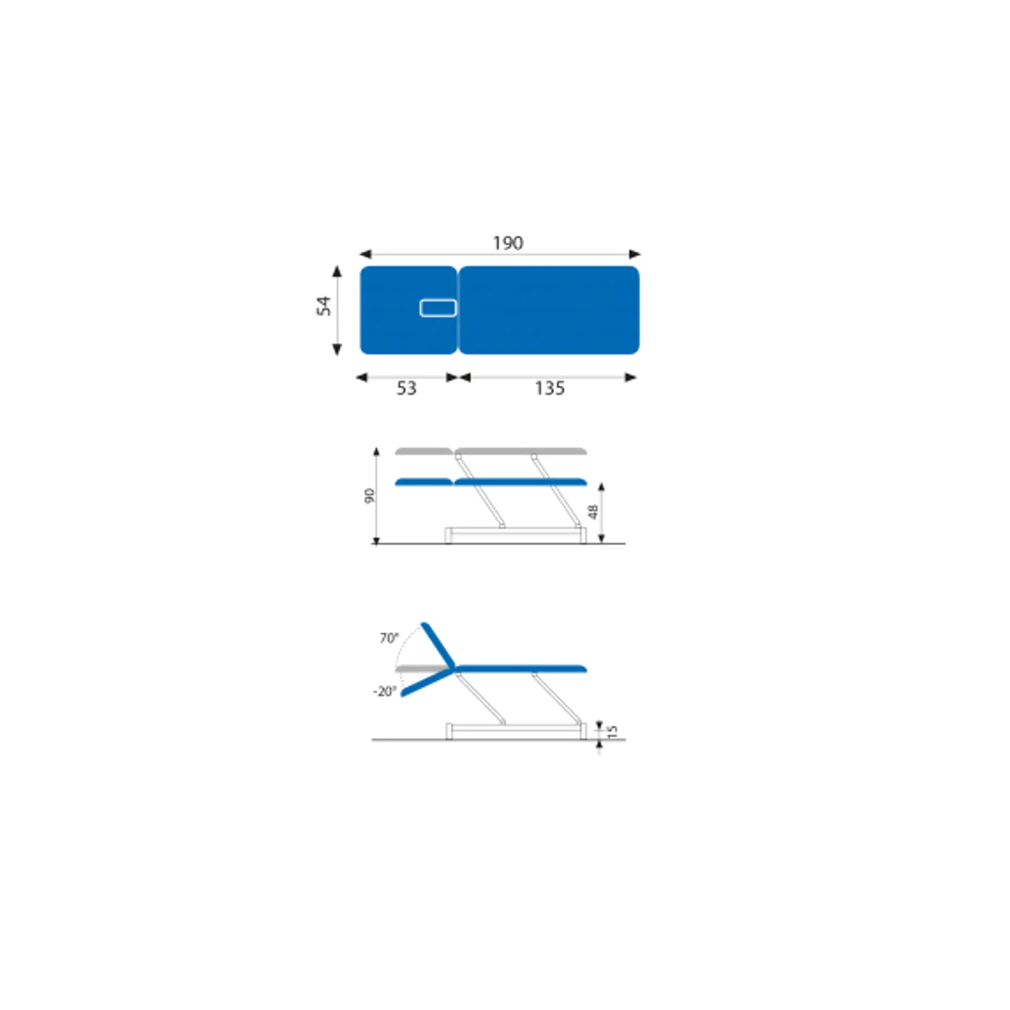 Electric pedicure chair - 188 x 62 cm with armrests