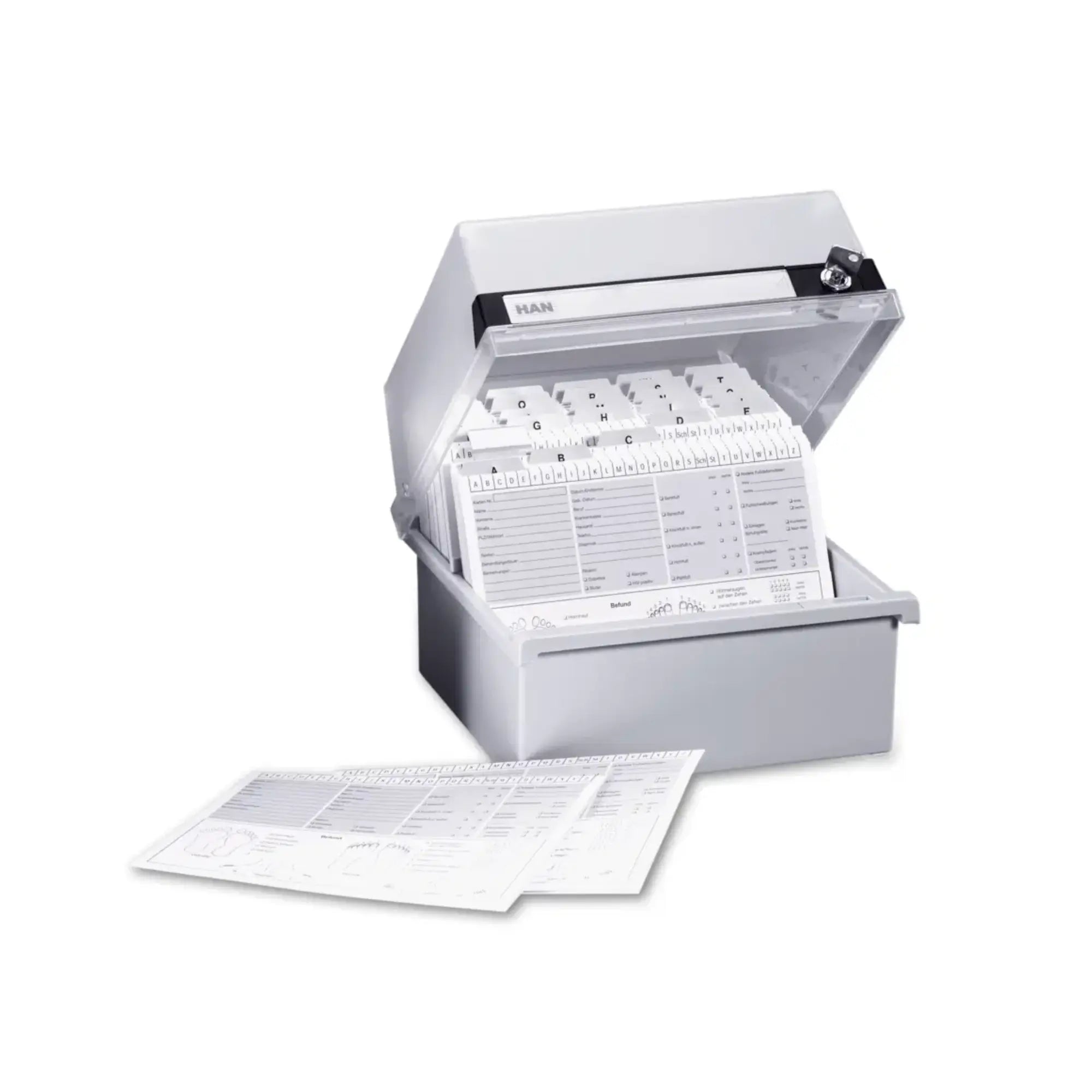 Lockable index card box for approx. 800 index cards - A5 landscape orientation - Light grey - Ruck