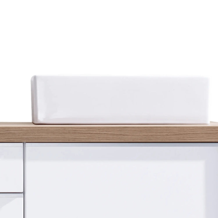 Square ceramic basin. Design perfectly adapted to the lines of the furniture.