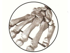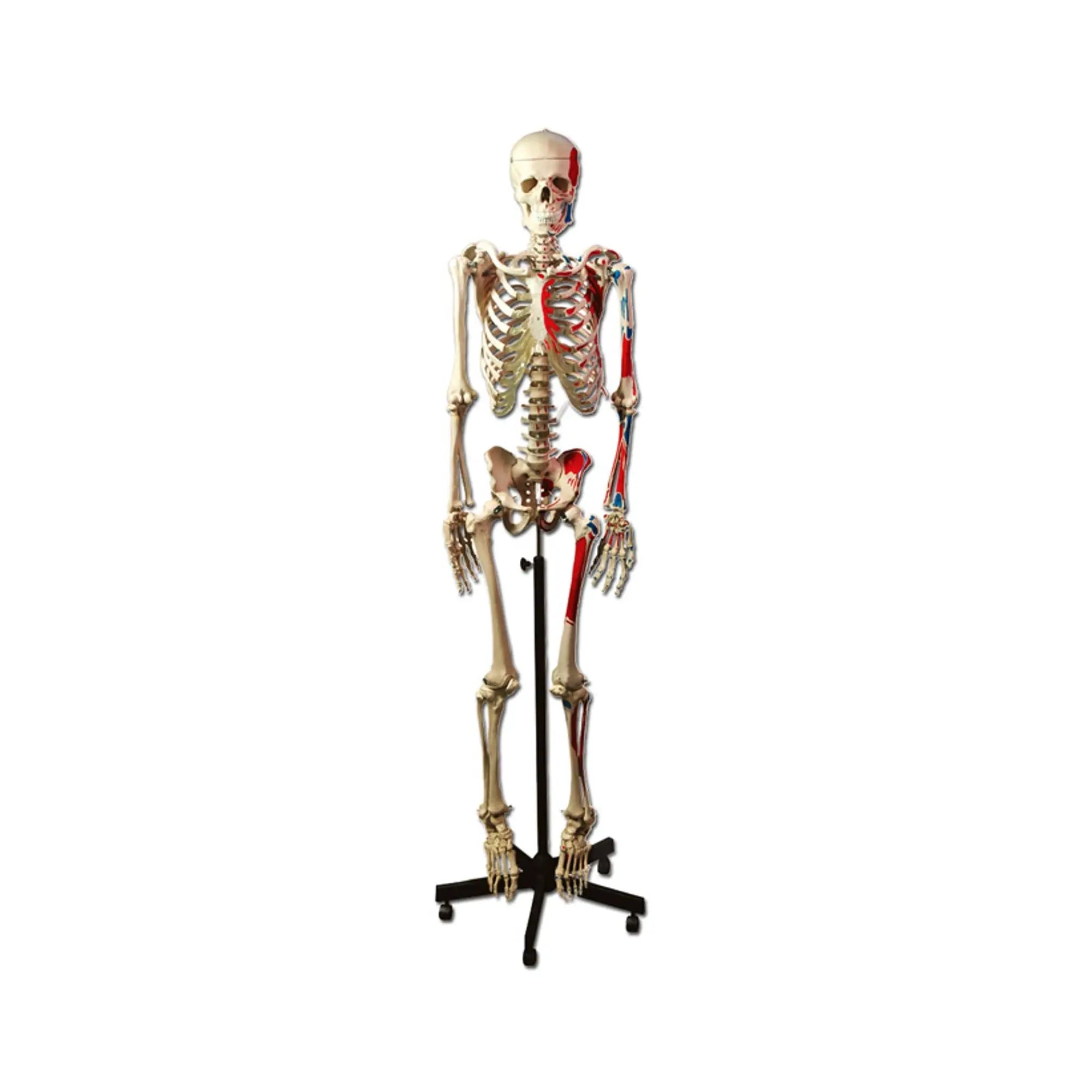 Characteristics identical to those of article code 40120, but the left part of the skeleton includes the points of origin (red) and insertion (blue) of the muscles.